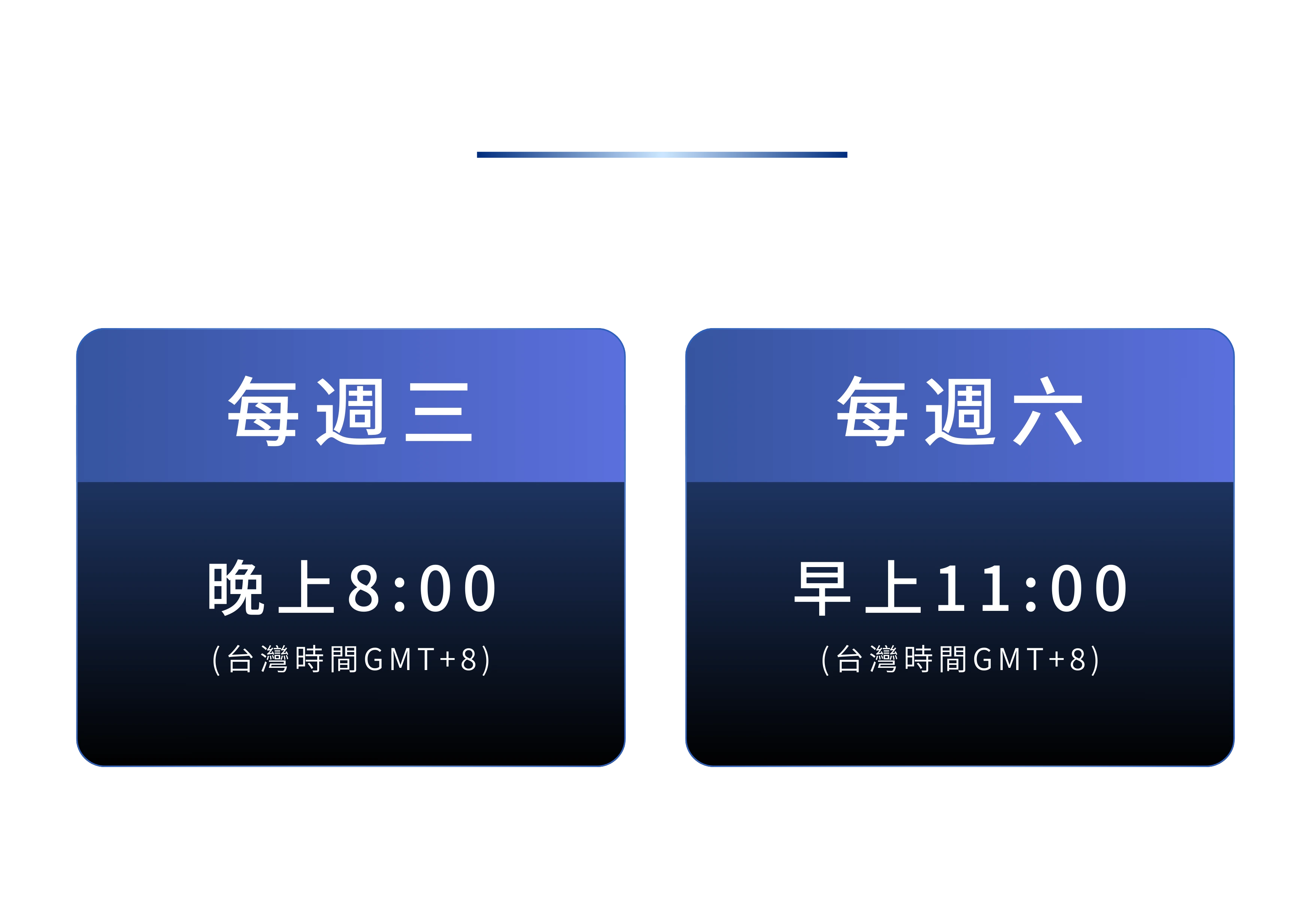在7天試用期內,您可以根據報名時間參加當週 1~2 堂課,上課時間為每週三晚上8點及週六上午11點(台灣時間)。