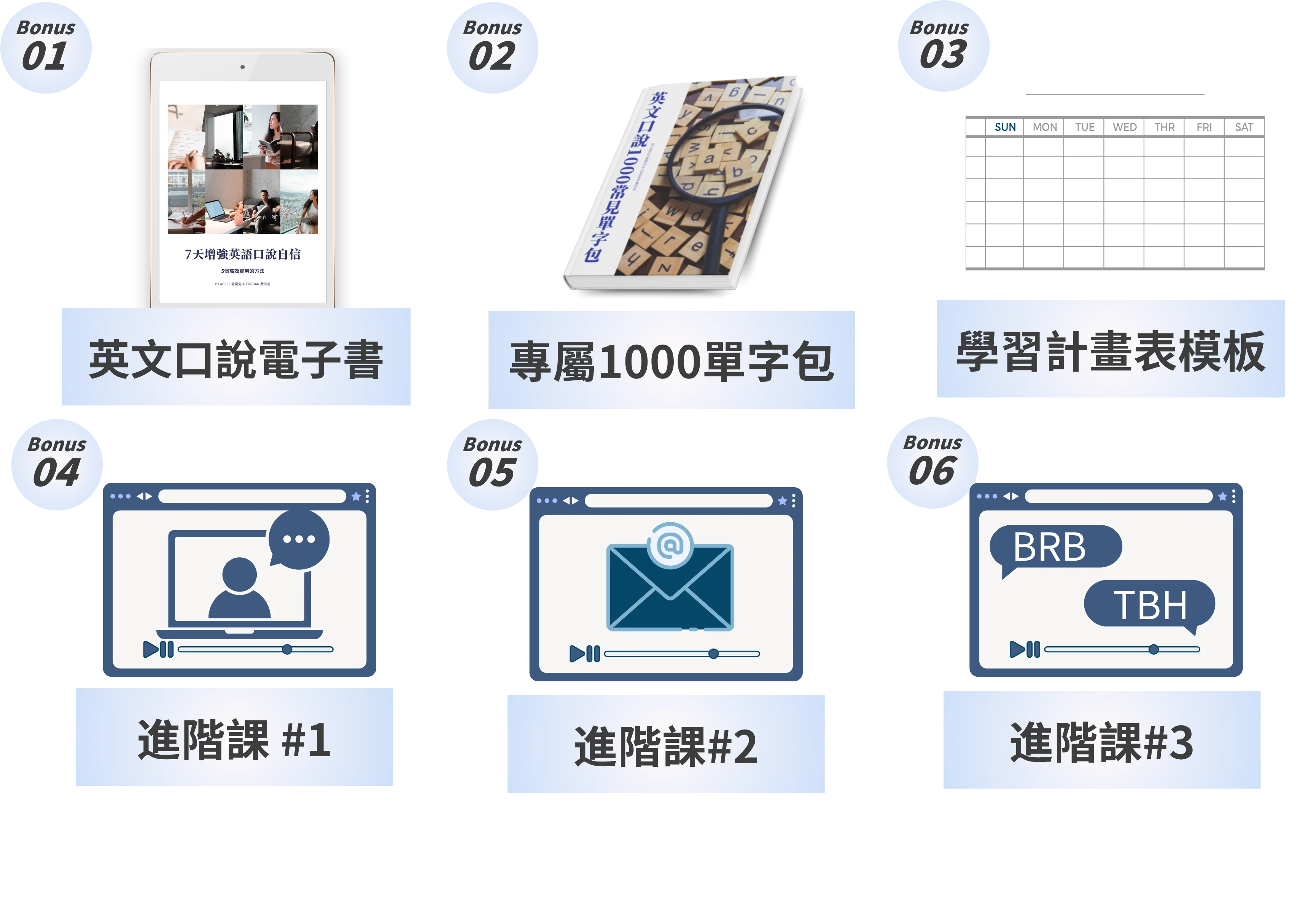 課程採雙軌訓練設計,包含主題式的即時口說實戰+由專業母語老師帶領的系統打底課程,讓你從開口卡關 → 核心詞彙+句型打底 → 建立理解+語意連結 → 螺旋式的口說培訓 → 打造反射式表達,開口順流