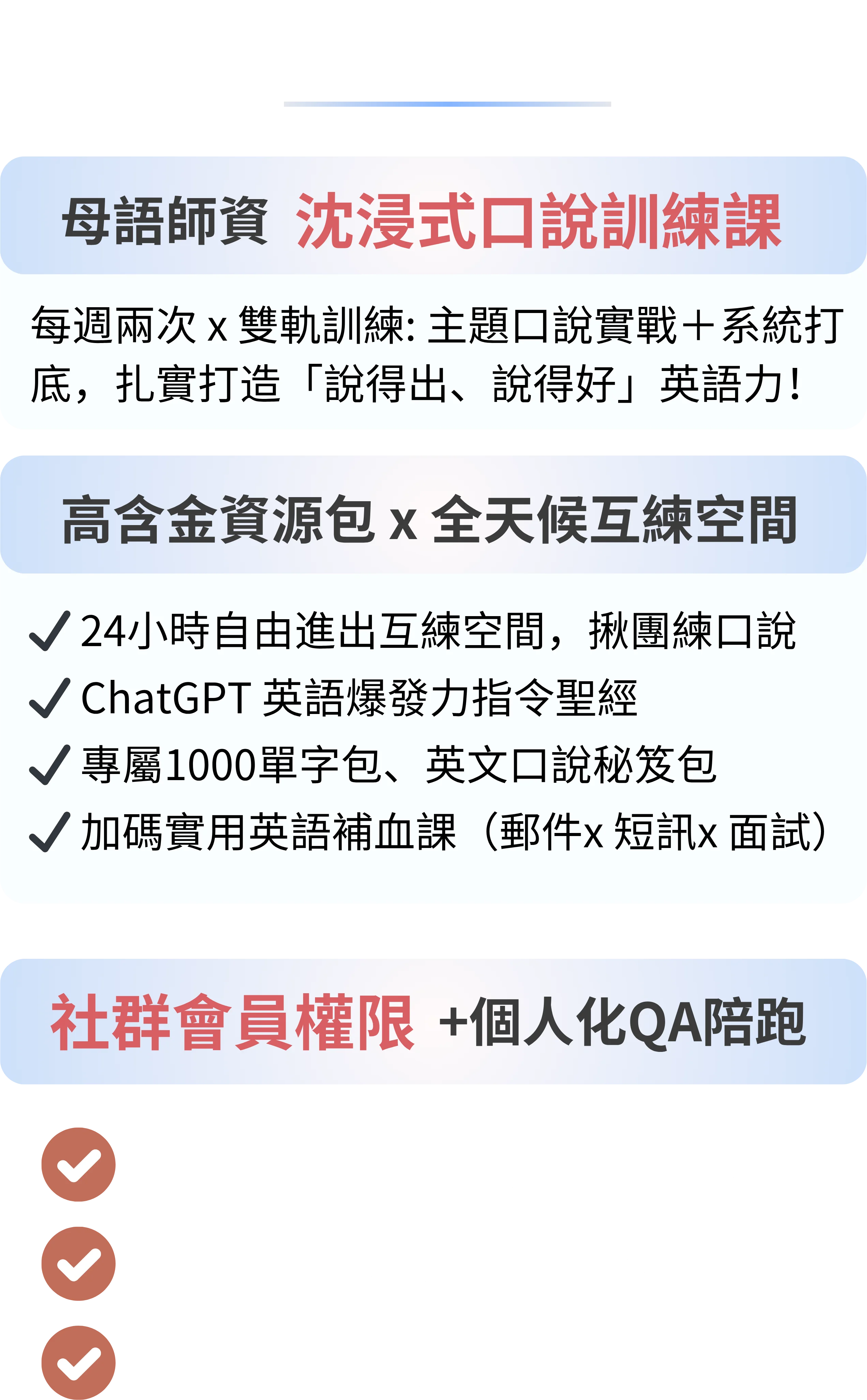 ✔️ 專業母語老師全程帶領與回饋,不再只是被動聽講